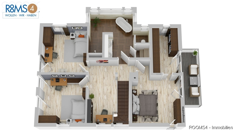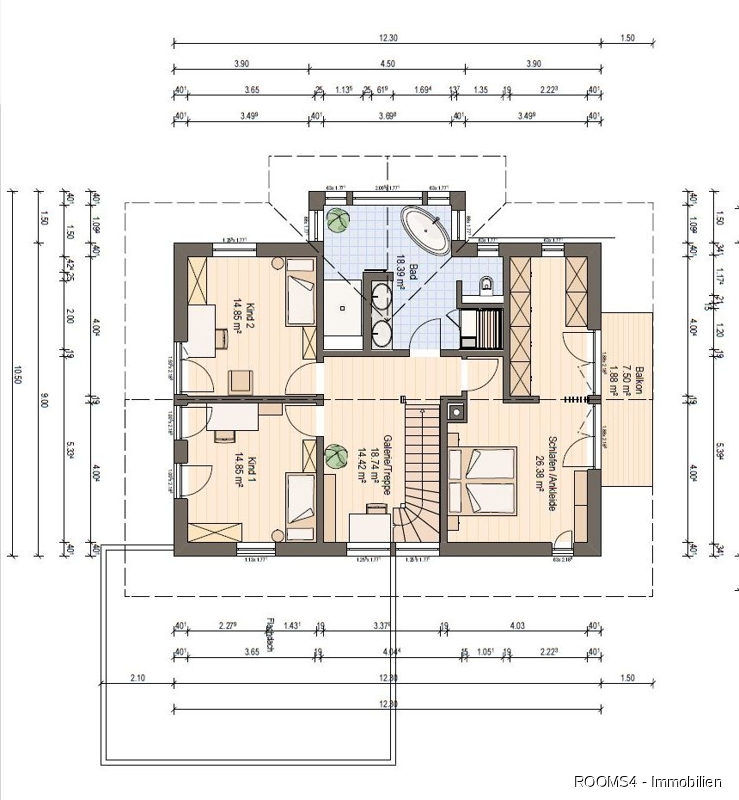 Im Obergeschoss sind ein großzügiges Elternschlafzimmer mit separater Ankleide und Zugang zum Balkon sowie zwei helle Kinderzimmer geplant. Ein Highlight ist das ca. 19,00 m² große, großzügig gestaltete Masterbad.