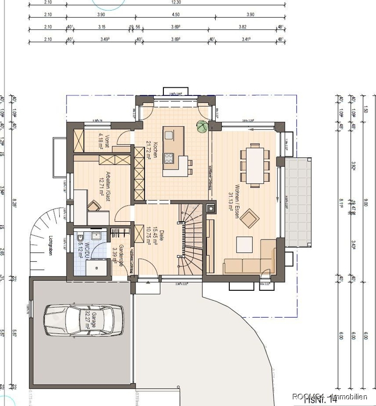 Optional kann eine direkt angrenzende Garage mit begrüntem Flachdach realisiert werden. Wir unterbreiten Ihnen gerne ein entsprechendes Angebot.